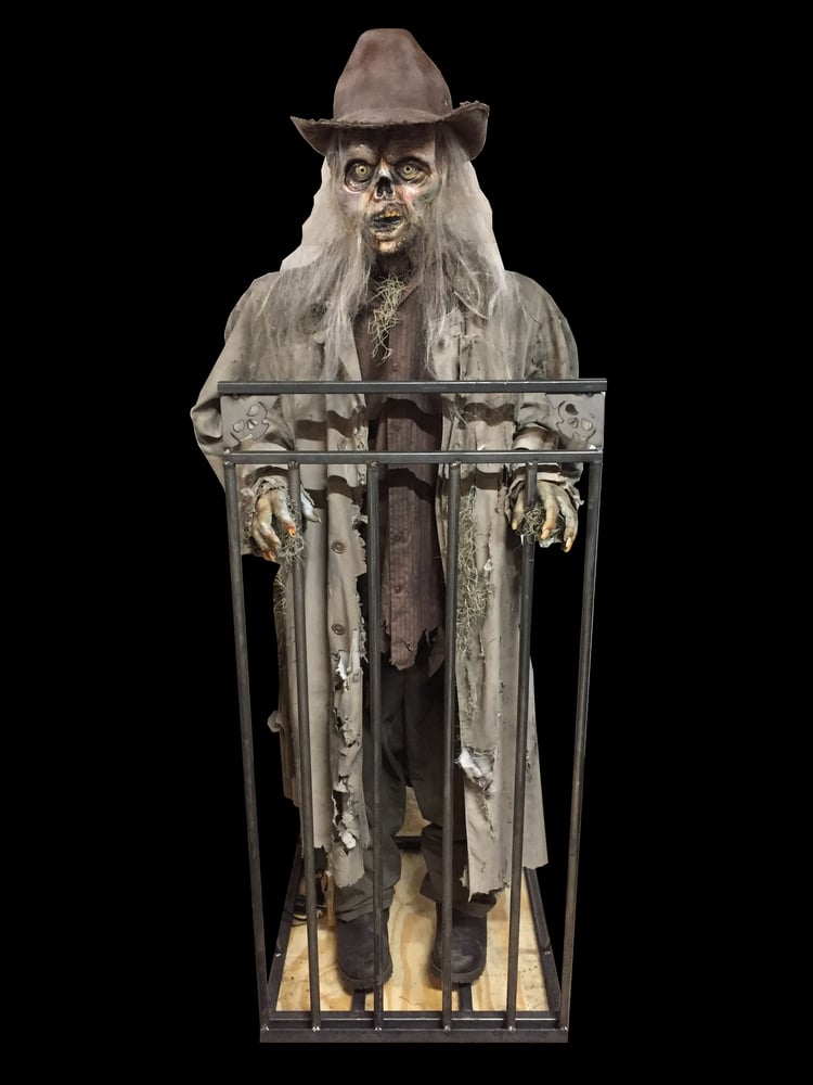 Once activated, the zombie thrashes back and forth along with head movement as if he was trying to escape. Prop can be used in a variety of themes and mount to anything you want it to thrash against. - Graveyard fence, Jail Bars, Chainlink fence, etc. Prop comes with complete with Animated Character mounted on a 24"24" Base. Prop can also be customized for different themes (Clown style, Female Zombie, etc. please email us for customization). Comes plug and play with Controller and PIR Sensor. Requires 110V and 100 PSI. *PROP IS MADE TO ORDER, PRODUCTION TIME VARIES FROM 4-10 WEEKS**