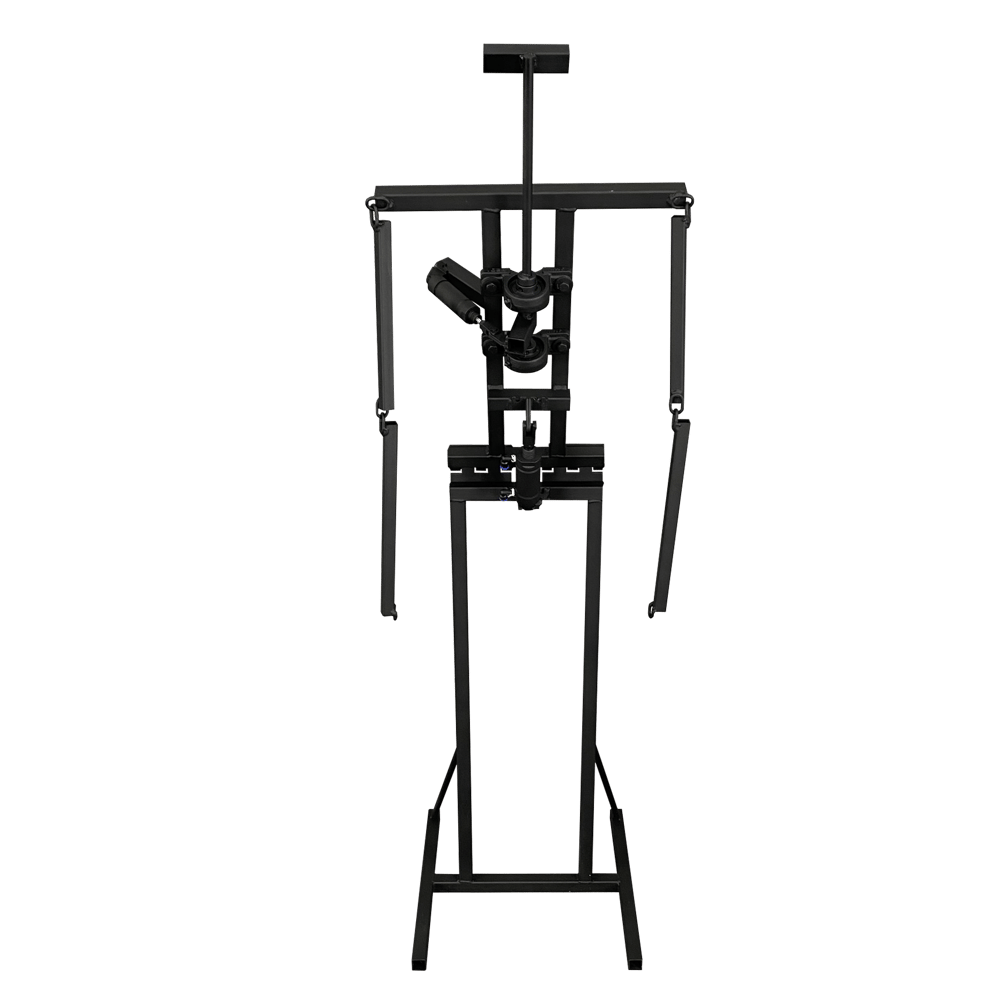 2 Movement Full Body DIY Character mechanism! Movements consist of Waist pivot forward and head turn left/right. Arms are linked together and move freely to attach to a fence panel, gate, or chainlink panel. With the movement in the waist, and the linked arms, the prop looks like it is pulling itself back and forth trying to escape. Side to side head movement adds additional thrashing motion. Mechanisms can be built up with foam, pool noodles for the arms/Legs, and chicken wire for the body. Comes ready to run. Requires 110V (household outlet) and 80PSI. Included: Steel mechanism and all Pneumatic components. Build your own multiple movement professional prop with quality hardware at a fraction of the cost of a completed one!