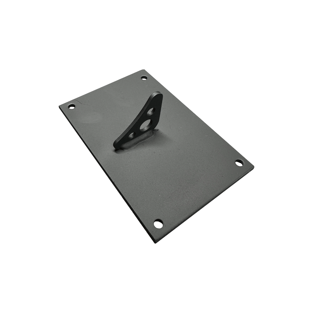 This Large mounting plate connects to the end of your linkage rod and gets mounted on your moving part. It has a 5/16" Hole to mount to your linkage rod with a 6x4 Painted Steel Plate with 1/4" holes in each corner. This works great for giving a bigger mounting area for "Monster In A Box" props or Coffin Lid Lifters!