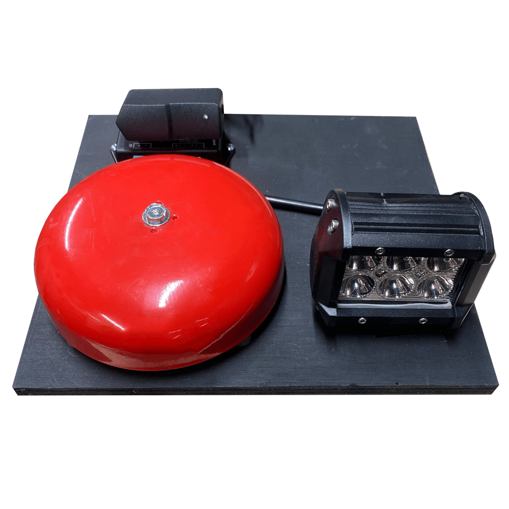 Once triggered, a Bright White LED Turns on while the does a continuous ring. Bell rated at 95db. Perfect for a random spot startle scare, school class scene, fire scene, factory break room scene. Included is the Bell, one Bright White LED Light, PIR Sensor, and Programmable controller (Mounted on a board as shown for easy install) You can control the length of the Bell sound and also the light (if you want it to stay on or strobe) easily with the included Aamon Duo Prop Controller! This kit is electric only (No Compressed Air Required) and Requires 110V (household outlet). Plug and play kit, easy to use and install! *Note: Production time is 2-4 weeks before shipping*