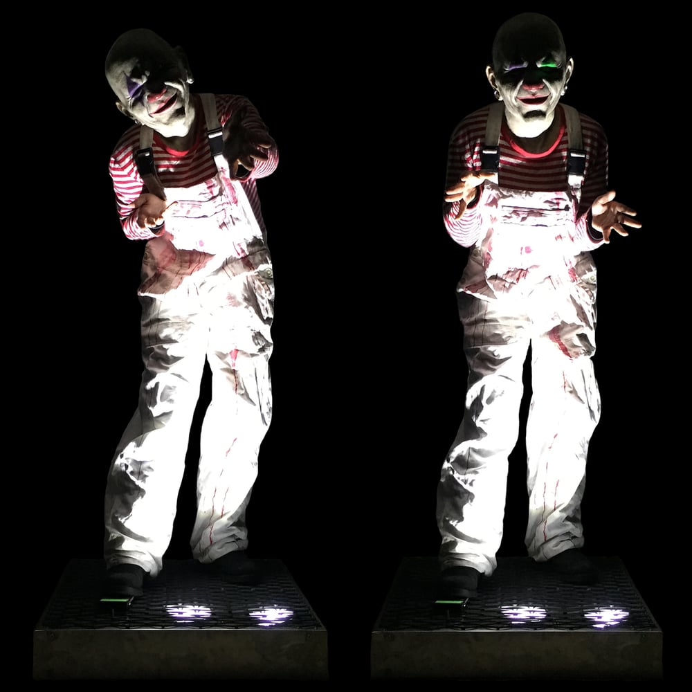 These little light platforms's pack a punch! Designed for your actor that hides out in a dark corner giving your guests an "in your face" scare once lit up! This effect is a hands free unit and is activated by a foot pedal switch, two super bright White LEDs lights shine up illuminating your actor. 6” Height, 2'x2' Base. Made out of steel for durability. *Production time varies 2-4 weeks* *Shipping will not be charged until ordering, we will contact your for shipping charges once ordered*